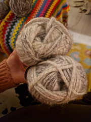 Carlyle, sold exclusively at Michaels, is a super bulky, light and lofty acrylic blend yarn, in a palette of timeless neutrals with metallic accent. Named for the Upper East Side art deco luxury hotel of the same name in New York City, this yarn brings an element of modern elegance and cosmopolitan élan to super chunky cold-weather hats, shawls, and scarves by combining solid and shading tones with a glint of metallic glitter. Finished projects work up quickly and feel substantially lighter than other super chunky projects—plus it’s perfect for arm-knit projects too. Check out all our Isaac Mizrahi® Craft™ Carlyle Yarn colours in store!