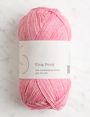 Fine Print is a classic sock yarn, springy, durable, and super soft. Spun and dyed in Peru with 75% superwash wool and 25% nylon, its round, 4-ply structure lends excellent stitch definition and strength that will last through daily wear and many trips through the washer and dryer.