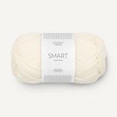 SMART contains 100% wool. Superwash- treated so that it machine washable and suitable for active children and adults. This soft comfortable quality stays very good throughout washing and use. Meters per ball = 100