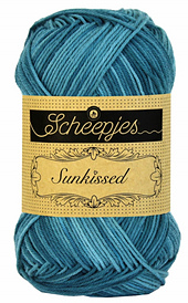 Scheepjes Sunkissed yarn has a subtle colour variation that gives a soft ‘sun bleached’ effect to the yarn. 100% un-mercerized cotton means no shine to this yarn. Sunkissed is beautifully soft with great stitch definition and a soft drape. Can be used in conjunction with Scheepjes Cotton 8 yarns as the weight and thickness are the same, except Cotton 8 is a solid Colour.