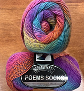 Poems Sock is a 75% wool / 25% nylon roving sock yarn featuring beautiful shades which blend easily from one color to the next. Available in bright, medium, and somber shades, Poems Sock is not just for socks --- try it for mittens, hats, and lace projects too!