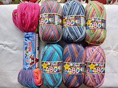 This yarn was only available in Germany. Some test yarns were unlabeled and called Opal Abo by purchasers. Later on the company came out with an Opal Abo labeled yarn. All stashes are combined here.